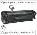 With a straightforward design, this toner cartridge allows quick and easy access for maintenance. Firstly, open the top cap to release waste toner effortlessly, keeping this cartridge clean and ready for use. Additionally, the side cup can be opened to refill new toner, streamlining the process of replenishing this cartridge. This mechanism saves time and effort while maintaining reliable printing performance.