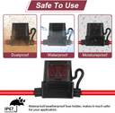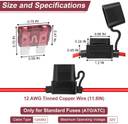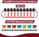 VERSATILE CAR FUSES: Streamline your installation process with this user-friendly inline fuse holder, fit for a multitude of vehicles including automotive, marine, and golf carts, as well as various electrical circuits. Simplify your wiring needs with this adaptable solution, tailored to provide reliable protection across diverse applications, and enhance the performance of your electrical systems.WATERPROOF AND PROTECTIVE: Designed with a cap that shields the internal fuse, this 12V inline fuse holder effectively guards against dust, moisture, and water ingress. Whether facing rainy days or dusty environments, trust this waterproof holder to maintain the integrity of your electrical systems.COMPLETE PACKAGE: Receive a versatile kit featuring 10 robust 12AWG inline fuse holders and a diverse assortment of 55 standard blade fuses, including ratings 5A/7.5A/10A/15A/20A/30A/40A. Ideal for customizing and ensuring optimal circuit protection for a wide range of electrical needs. This comprehensive pack offers flexibility and readiness for any electrical setup in vehicles or marine applications.ENHANCED DURABILITY: Crafted from tin-plated copper, this wiring harness delivers remarkable bending performance, excellent electrical conductivity, and resistance to melting. It provides dependable long-term operation, maintaining stability under demanding conditions. Invest in this fuse holder for a durable and enduring electrical solution.SUPERIOR BUILD QUALITY: Engineered with heavy-duty 12AWG wire capable of supporting high amperage, this inline fuse holder enhances circuit protection. The full loop design, measuring approximately 11.8 inches, allows you to tailor the length as per requirement, ensuring effortless installation and reliable performance. Ideal for securing electrical connections in challenging environments.