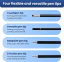 IDEAL FOR DRAWING, NOTING, AND JOTTING: From quick note-taking during meetings to intricate digital drawings, this stylus is tailored for diverse tasks. The multiple tip options offer exceptional control and precision, making it easy to switch between creative projects and everyday writing or navigation on your favorite touchscreen devices.PREMIUM METAL HOUSING DESIGN: Crafted with a durable metal housing, this stylus pen boasts a sleek and modern look while providing long-lasting durability. The quality construction ensures a comfortable grip and a solid feel in hand, combining style with practicality for everyday use and extended writing or drawing sessions.4-IN-1 MULTI-FUNCTIONAL STYLUS PEN: This stylus pen offers exceptional versatility with its unique 4-in-1 design, allowing users to switch effortlessly between four interchangeable tips. Whether you need a rubber tip for general navigation, a disc tip for smooth sketching, or a fine point for detailed notes, this pen is ready for every task.UNIVERSAL TOUCHSCREEN COMPATIBILITY: Engineered for broad compatibility, this stylus pen works flawlessly with Android devices, tablets, and any capacitive touchscreen. Its an ideal tool for students, professionals, and artists who require reliable performance on a variety of touch-enabled gadgets.DUAL HEAD INTERCHANGEABLE TIPS: With both ends of the stylus capable of holding different tips, you can customize your experience for maximum convenience. Choose from two sizes of rubber tips, a precise disc tip, or a fine point, enabling seamless transitions between drawing, jotting, or simple tapping on your touchscreen device.
