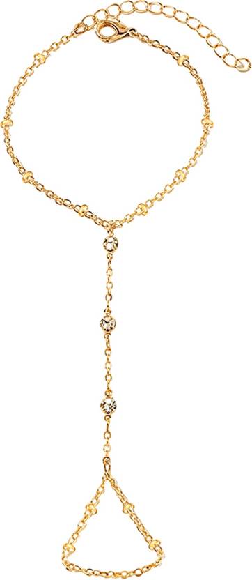 Slim Golden Alloy Hand Chain with Bling Rhinestone Charm