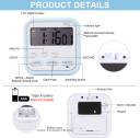 MAGNETIC TIMER: This timer for kitchen has a bracket on the back, allowing you to place it on the working borad. Or you can attach it on refrigerator, or any metal surface as we also add a magnetic patch on the back.MUTE FLASHING LIGHT DESIGN: Flash light design, when you need a mute reminding, this timer can allow you to switch ringtone reminding or flash light reminder freely, meeting your more needs under different situation.ALL PURPOSE TIMER: Best work as kitchen timer, gym timer, study timer, spa timer, BBQ timer, hair salon timer and schedule reminder etc. No more worrying of missing cooking time, forgeting important project, getting rid of mess time schedules. Let time and life be well organized.MULTI FUNCTION LCD TIMER: Combing the function of alarm clock, timer and countdown timer, three working mode switchable. Designed with 2 set of alarm under alarm clock mode; 1s-24h countdown / count up, 2 counting modes ; alarm reminder and mute flashing light reminder under timer modes. Multifunctional timer meets your more needs in life.EASY BUTTON CONTROL AND BATTERY POWERED: Powered by battery(NOT INCLUDED), low power consumption design, no need of changing battery frenquently. Easy operation, separate button design, easy to set up and switch modes.