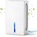 ADVANCED DEHUMIDIFICATION: Utilizing semiconductor condensation technology, this compact dehumidifier effectively covers up to 400 sq. ft. It efficiently removes up to 1.1L of moisture per day in environments with 86°F and 80% RH, enhancing your air quality and ensuring a more comfortable living space.DUAL DRAINAGE SYSTEM: Benefit from the manual draining option with a transparent 2L water tank that signals when full, automatically shutting off to prevent overflows. For added convenience, a 6.56ft drain hose is provided for continuous, hassle-free drainage, perfect for prolonged use in damp areas.INTELLIGENT WATER-FULL DETECTION: Designed with a sensitive stainless steel probe, this dehumidifier guarantees protection against spills by automatically powering down when the tank is full. The intuitive red light indicator alerts you to empty the tank without any messy leaks.ULTRA-QUIET OPERATION: Whether in high power or sleep mode, this dehumidifier maintains a quiet ambiance at 40dB, making it ideal for bedrooms or workspaces. Its automatic defrost function prevents damage from ice build-up, ensuring the unit runs efficiently and discreetly.AMBIENT LED LIGHTING: With 7 soft-changing colors, the built-in breathing atmosphere light adds a soothing touch to your environment. Easily control the lighting with a tap to create a colorful, tranquil setting, or pause it on your preferred hue to personalize your relaxation experience.