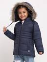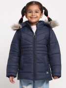 Girl's Navy Blue winter wear full sleeve solid parka Fur Jacket