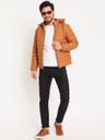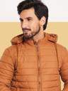 Men Solid High Neck Quilted Winter Jacket has a Detachable Hood. Elevate your fashion game with our Bomber Jacket that seamlessly blends timeless design with modern flair. Crafted to exude an effortlessly cool vibe, this jacket is the perfect choice for those seeking a versatile outerwear option.