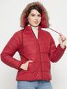 Vero Amore Women's Meroon Winter Wear Full Sleeve Solid Parka Jacket. Quilted With High Quailty Polyfill Fiber And Has A Detachable Faux Fur Hood. Has 3 Pocket 1 Inside And 2 Outside.