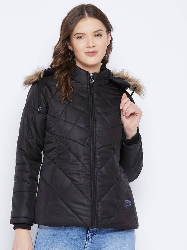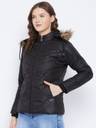 Vero Amore Women's Black winter wear full sleeve solid parka Jacket. Quilted with high quailty polyfill fiber and has a detachable faux fur hood. Has 3 pocket 1 inside and 2 outside.
