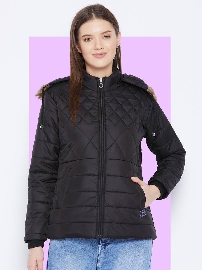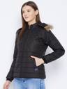 VERO AMORE Women's Black winter wear full sleeve solid parka Jacket. Quilted with high quailty polyfill fiber and has a detachable faux fur hood. Has 2 out side pockets.