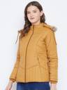 Vero Amore Women's Black winter wear full sleeve solid parka Jacket. Quilted with high quailty polyfill fiber and has a detachable faux fur hood. Has 3 pocket 1 inside and 2 outside.