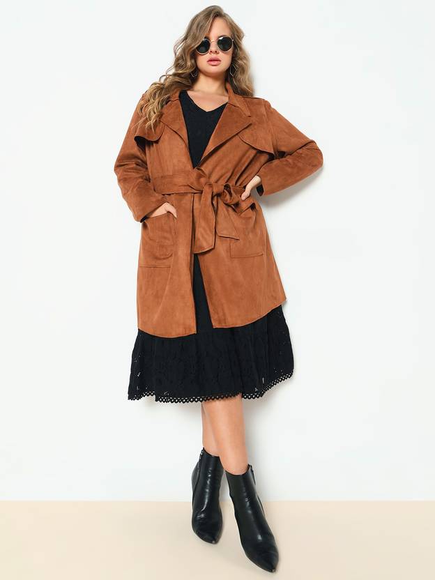 VERO MODA CURVE Brown Suede Long Coat