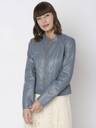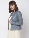 Women's full sleeves PU coated short jacket cut in a regular fit. Features front zipper opening, side pockets, and length that falls on hips.
