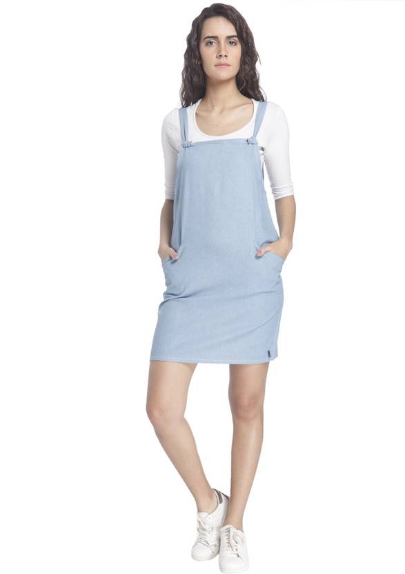 VERO MODA Women Pinafore White, Grey Mini/Short Dress
