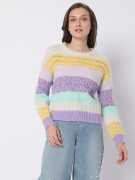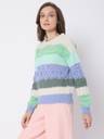 VERO MODA Woven Round Neck Casual Women Multicolor Sweater