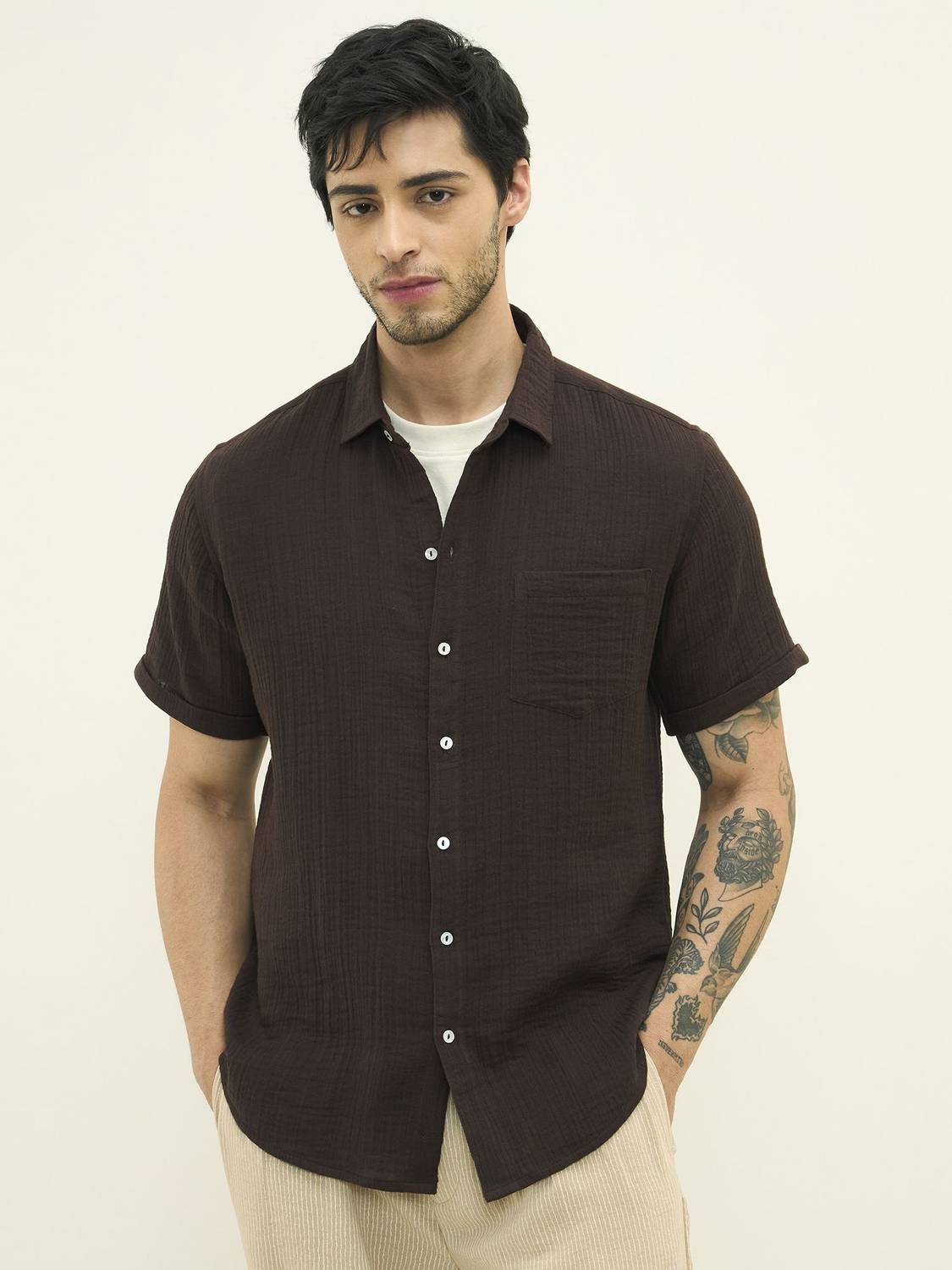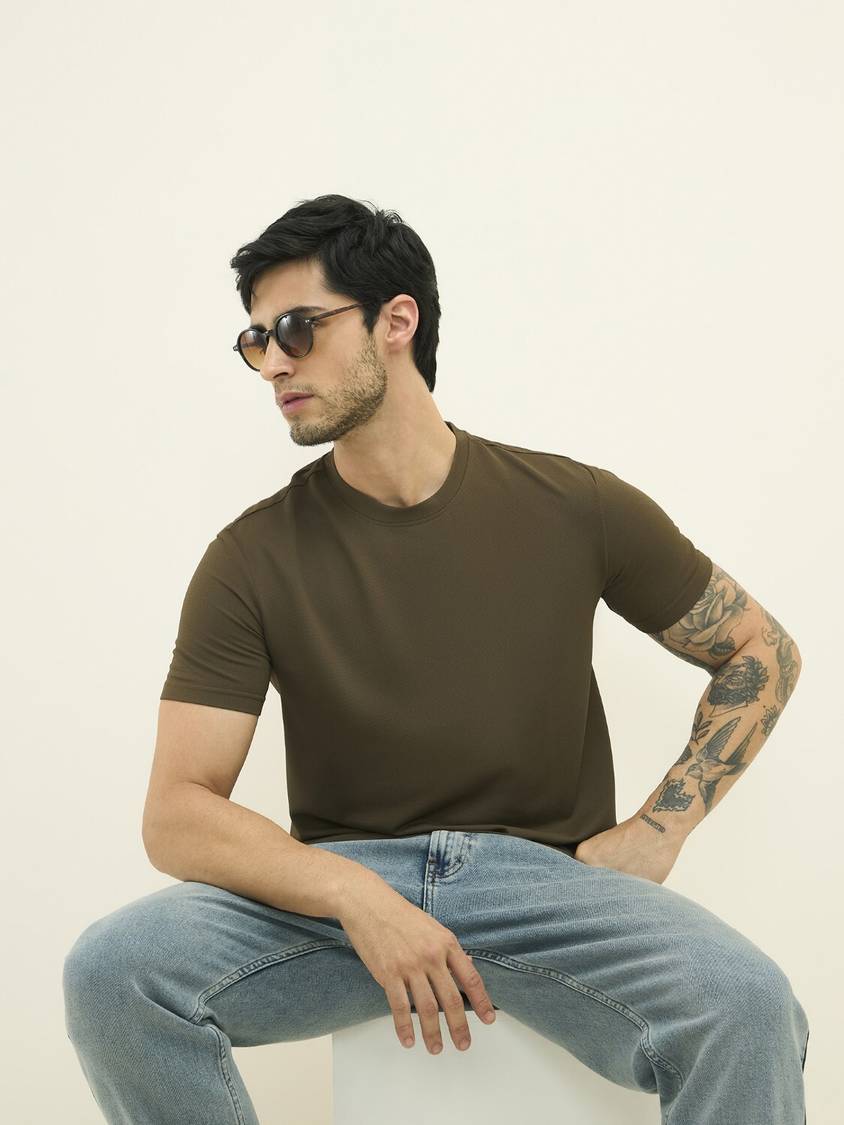 Discover premium comfort Verosmart Mens Primary Brown T-Shirt. Premium fabric construction superior softness breathability. Classic round neck half sleeve silhouette. Regular fit perfect for all body types. Exceptional durability retains shape color after washes. AW-25 essential wardrobe staple.