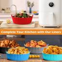 [Easy to Clean & Non-Stick] - Silicone air fryer liners are totally dishwasher safe, help you to save your time & energy after cooking. The 1.5 times heightened edge can protect the side of fryers and prevent food from sticking to it. No more greasy mess on the air fryer basket and preserves the integrity and beauty of your food. Reusable air fryer silicone pots can replace other air fryer pans or disposable parchment paper. The carefully designed 360°air circulation structure makes the heat distribution more uniform so that your food can be cooked perfectly in a shorter time & no more risk of flammability. [100% Food-Grade Silicone Pot] - round air fryer liners are made of food-grade silicone, which is oil-proof & heat resistant, withstands temperatures up to 450°F. Won't affect the taste of the food at all? The Soft silicone also makes it easy to hand wash. [Unique Oil Guide Groove Design] - The air fryer tray's unique raised texture can keep grease away from the french fries and chicken and isolate residues, 2 times thicker handles of the top help easy to grip and more convenient to use. Universal size Compatible with most of Air fryer 5.3QT or bigger air fryer.