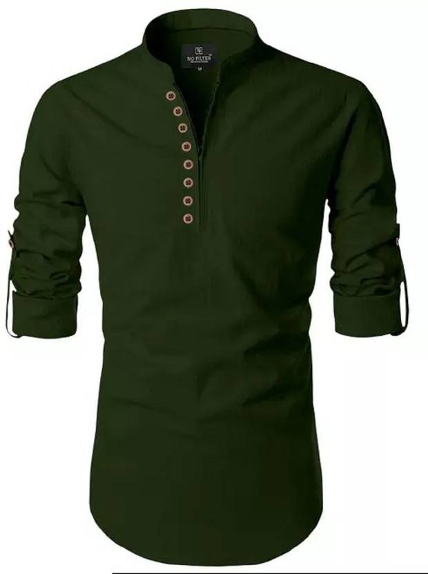 Vertali Industries Men Solid Straight Kurta (Dark Green)