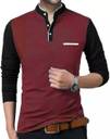 PSDESIGN Colorblock, Solid Men Mandarin Collar Maroon, Black T-Shirt