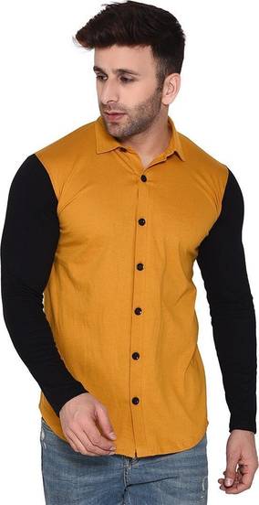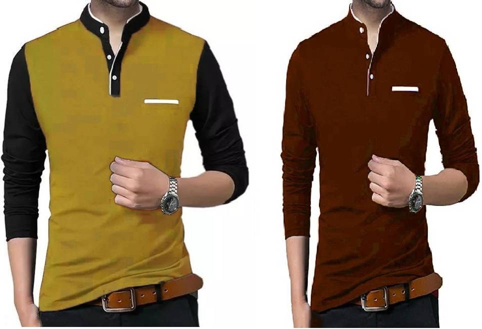 vescor Solid Men Mandarin Collar Yellow, Maroon T-Shirt