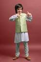 Vesham Boys Festive & Party Kurta, Waistcoat and Pyjama Set (Green Pack of 1)