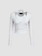 Istyle Can Women’s Halter Neckline Knotted Cross-Wrap Crop Top | Long Sleeve Fake Two-Piece Rib Knit Slim Fit Top | Solid White, Black, Brown | Y2K / Acubi Style. Step into the new season with this Solid Wrap Cut Out Neck Rib Knit Full Sleeve Top – a bold yet balanced piece designed to elevate your everyday looks. The cross-wrapped chest with halter neckline creates a sleek cut-out effect, giving it that signature Y2K / Acubi vibe. Crafted in a ribbed knit fabric, it’s slim-fit yet comfy, hugging your curves without restricting movement. The fake two-piece illusion adds layering without bulk, making this top a true statement-maker. Whether you’re pairing it with wide-leg trousers for a casual coffee run or dressing it up with a faux leather mini skirt for a night out, this versatile crop top makes every outfit Insta-ready. Trendy Y2K / Acubi Style – Halter neckline, cross-wrap chest, and cut-out detail for a fashion-forward edge. Slim Fit Rib Knit – Comfortable stretch fabric that contours to your shape. Fake Two-Piece Design – Gives a layered look without extra bulk. Versatile Styling – Dress down with jeans or elevate with skirts and boots. Full Sleeves – Perfect for mid-season layering. Available Colors – White, Black, Chocolate Brown. Easy Care – Hand wash or machine wash friendly. Fabric: Ribbed Knit Neckline: Cut-Out Wrap Neck (Halter Style) Sleeves: Full Sleeve Fit: Slim Fit Pattern: Solid Length: Regular Crop Hemline: Straight Colors: White, Black, Chocolate Brown Sizes: S, M Care Instructions: Hand wash or machine wash, gentle cycle. Day Look: Pair with beige wide-leg pants + sneakers. Evening Look: Match with a faux leather mini skirt + boots. y2k top y2k tops crop top y2k y2k fashion tops for women tops for women western trendy tops for women stylish tops for women crop top for women acubi top . y2k tops for women y2k aesthetic tops y2k ribbed top tops for women trendy western tops for women under 300 crop top for jeans women fashionable tops for women party wear stylish crop tops for women full sleeve crop top for women acubi style tops for women