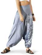 Free Size : Waist : 26"-36" (Comes with Half Elasticated waist, Anyone in the Waist size range would fit in) Height : 40" (adjustable with a Cuff at the bottom) Elevate your style and truly be yourself in the beautiful Harem pants pants. These harem pants will truly make you stand apart from the rest and embody your effortless and relaxed lifestyle. The pants are made of an incredibly soft long staple 100% cotton fibres and are adjustable with a cuff at the bottom of the pant. The perfect choice for being yourself and truly you.