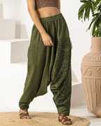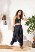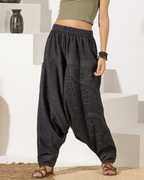 Free Size : Waist : 26"-48" (Comes with Full Elasticated waist, Anyone in the Waist size range would fit in) Height : 40" Elevate your style and feel oh so comfortable in the Tribal Stone pants! These harem pants are everything you need and more to feel truly comfortable and at easy. The pants are made of 100% cotton and feature a full elasticated waist. Pair the pants with a simple tank top and some comfortable footwear for a complete look. Treat yourself to comfort today!