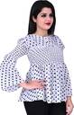 Casual Bell Sleeves Printed Women White Top