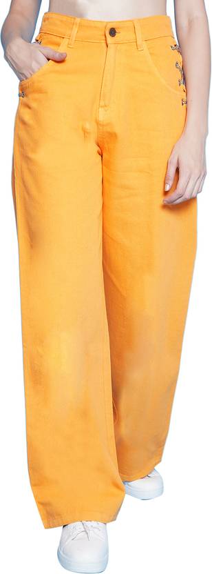 Orange Side Chain Detail Straight Jeans, in Bottom wear fabric, Straight Fit, Hemline and features Chain Detail At Side