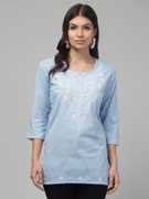 VESTIYAPLUS Women Embroidered Straight Kurta (Light Blue)