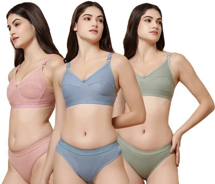 Bra & Panty Set Solid Multicolor Lingerie Set