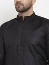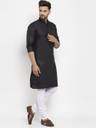 The kurta features a straight fit that creates a sharp, structured silhouette, complemented by a mandarin collar and a clean buttoned placket that reflect timeless craftsmanship with contemporary design sensibilities. Its knee-length profile with full sleeves blends tradition with modern style, while the matching pyjama is designed for ease of movement and a relaxed yet polished look, completing the ensemble with effortless sophistication.