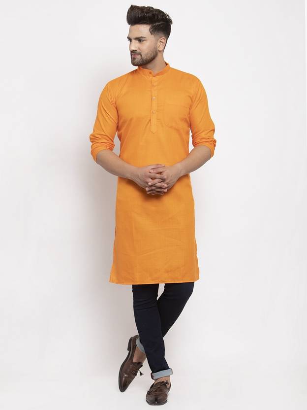 ABH Lifestyle Men Solid Straight Kurta (Orange)