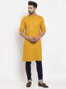The VEVOX men’s kurta is a refined expression of modern ethnic elegance, thoughtfully crafted for men who appreciate understated luxury and superior comfort. Made from premium cotton blend fabric, it offers a soft, breathable feel with a smooth finish that ensures comfort throughout the day and across seasons. The straight fit creates a sharp and structured silhouette, while the mandarin collar and clean buttoned placket reflect timeless craftsmanship and contemporary design sensibilities. Its knee-length profile with full sleeves delivers a balanced blend of tradition and modern style. Designed to transition effortlessly between celebrations and everyday wear, this VEVOX kurta is ideal for festive occasions, weddings, cultural ceremonies, office ethnic days, social gatherings, and elegant casual outings. It also makes a thoughtful premium gifting choice for festivals, birthdays, anniversaries, and special moments, perfectly suited for fathers, brothers, husbands, and friends who value refined ethnic fashion. To preserve its premium look and feel, the kurta can be machine washed or hand washed with mild detergent. Washing with similar colors, avoiding bleach, ironing at a low temperature, and drying in shade will help maintain its fabric integrity, fit, and finish over time. VEVOX represents quality-driven design, attention to detail, and timeless style. Every VEVOX garment undergoes stringent quality checks to ensure durability, comfort, and a flawless finish. Created for men who seek elegance without excess, this kurta is a sophisticated wardrobe essential that delivers lasting value and elevated ethnic appeal.