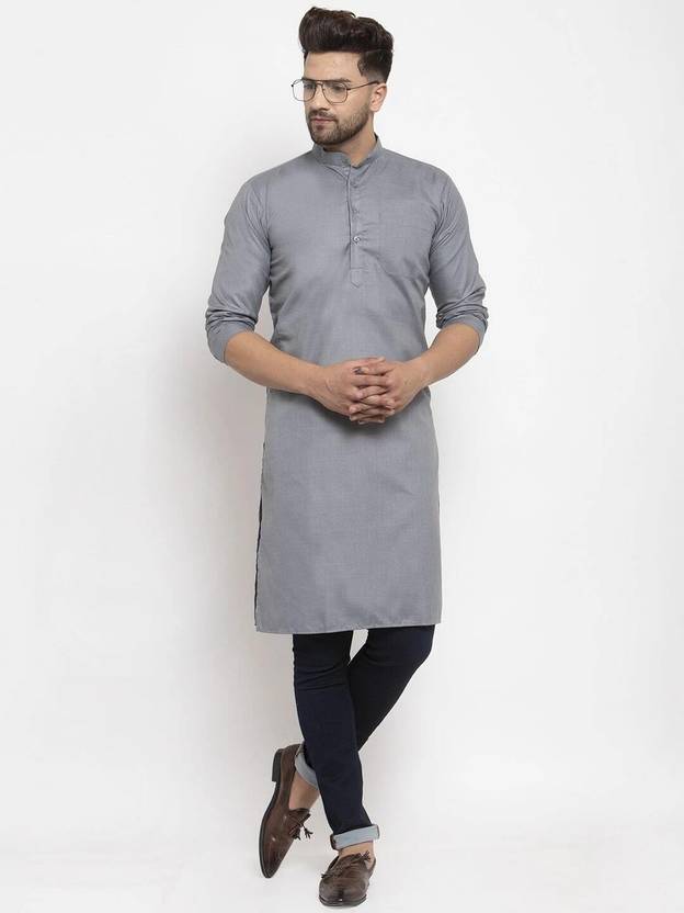 VEVOX Men Solid Cotton Blend Ethnic Dress (Silver)