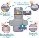 SMART WIPES POCKET – Opened or folded, this baby changing station grants easy access to wipes with the smart wipes pocket! Simply place your favorite wipes or reusable pouch in the pocket, and you’ll never need to search for wipes again!
