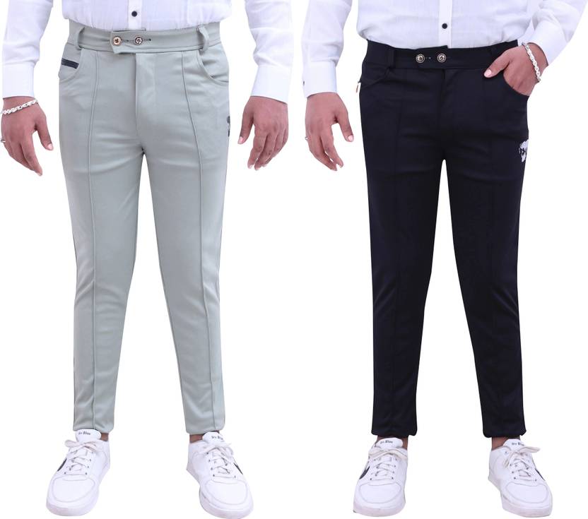 Pack of 2 Men Regular Fit Multicolor Lycra Blend Trousers