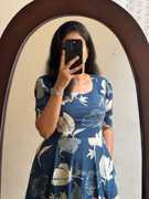VF Rajasthan Women Fit and Flare Blue Midi/Calf Length Dress