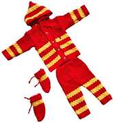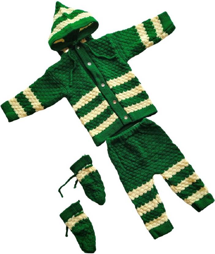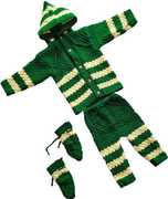 This Winter Baby Sweater is a stylish and comfortable woolen clothing which is a must-have for your little one because of the comfort and warmth it provides during the winter season. Available in attractive design and colors, this set consists of a woolen sweater that gets a stripe design which makes your baby look very cute. This sweater with hood is paired with the winter bottom/pajama, a booties, it forms a complete winter wear that protects your baby from the cold weather outside.
