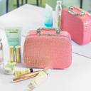 VGMALL Toiletry Box with Compact Magnifying Mirror for Travel (Multi-Colour) USE For Cosmetic Storage Boxes, Jewellery Organizer Vanity Box (Pink)