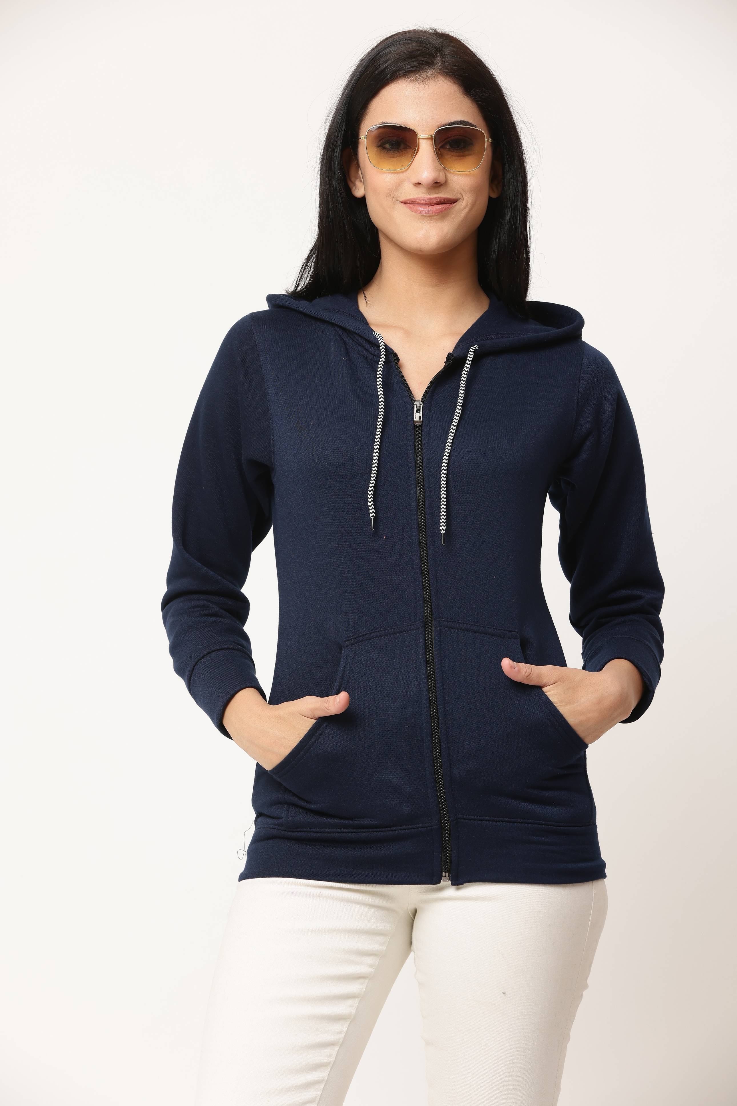 Women’s Solid Fleece Zipper Hoodie | Winter Warm Casual Sweatshirt with Pockets | Full Sleeve Zip-Up Hooded Jacket for Girls | Stylish Comfortable Regular Fit Hoodie