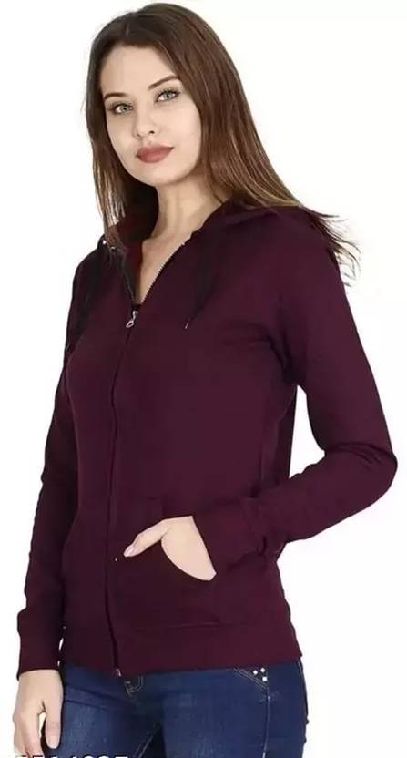 Women’s Solid Fleece Zipper Hoodie | Winter Warm Casual Sweatshirt with Pockets | Full Sleeve Zip-Up Hooded Jacket for Girls | Stylish Comfortable Regular Fit Hoodie