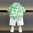 Give your little one a fresh and trendy look with this stylish boys' summer clothing set. This two-piece outfit features a short-sleeve button-down shirt and matching white shorts, perfect for casual outings, vacations, or daily wear.