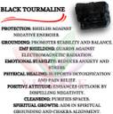 Black Tourmaline means grounding and protection. Many hold tourmaline healing crystals over the body's chakras to clear the aura, remove blockages, break up negative energy, and point to specific problems that one may be carrying.