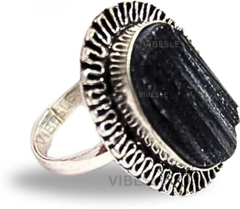 VIBESLE Black Tourmaline Adjustable Ring - Natural Energised Crystal for Energy Healing Meditation, Spiritual, Protection, Grounding & Balance stone ring - Protective Gemstone Jewelry for Men & Women