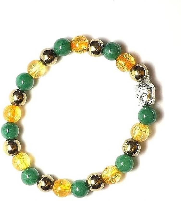 Design: The bracelet typically features beads made from materials associated with prosperity and spirituality. Common choices include jade, citrine, tiger's eye, or green aventurine beads, which are believed to attract wealth and positive energy. The beads may be interspersed with metal spacers or smaller accent beads for added visual interest.