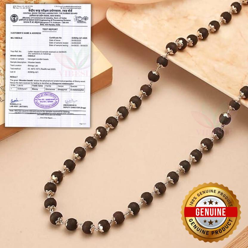 Handcrafted with 100% Natural Unpolished 8mm Ebony Wood (Karungali) beads capped in german silver, ensuring both strength and durability.