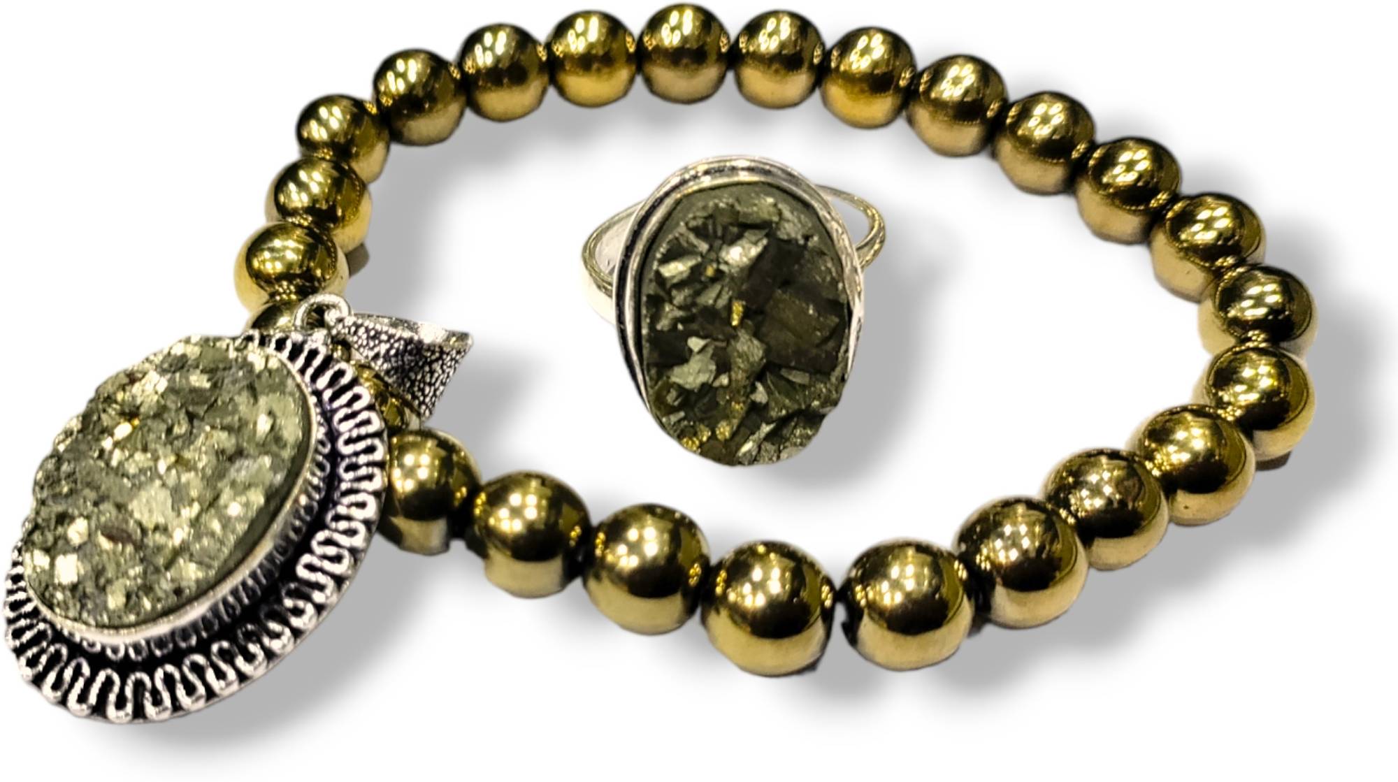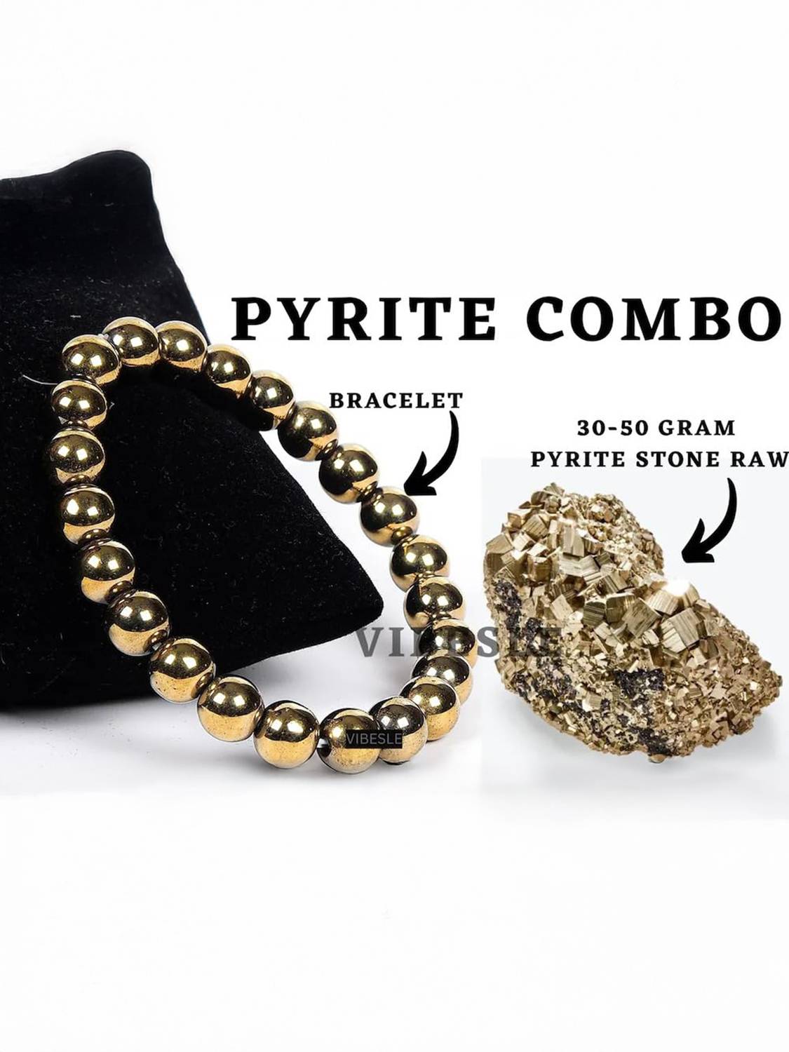 Natural Pyrite Bracelet with Cluster Combo Pack/Peru Pyrite for Wealth/Table