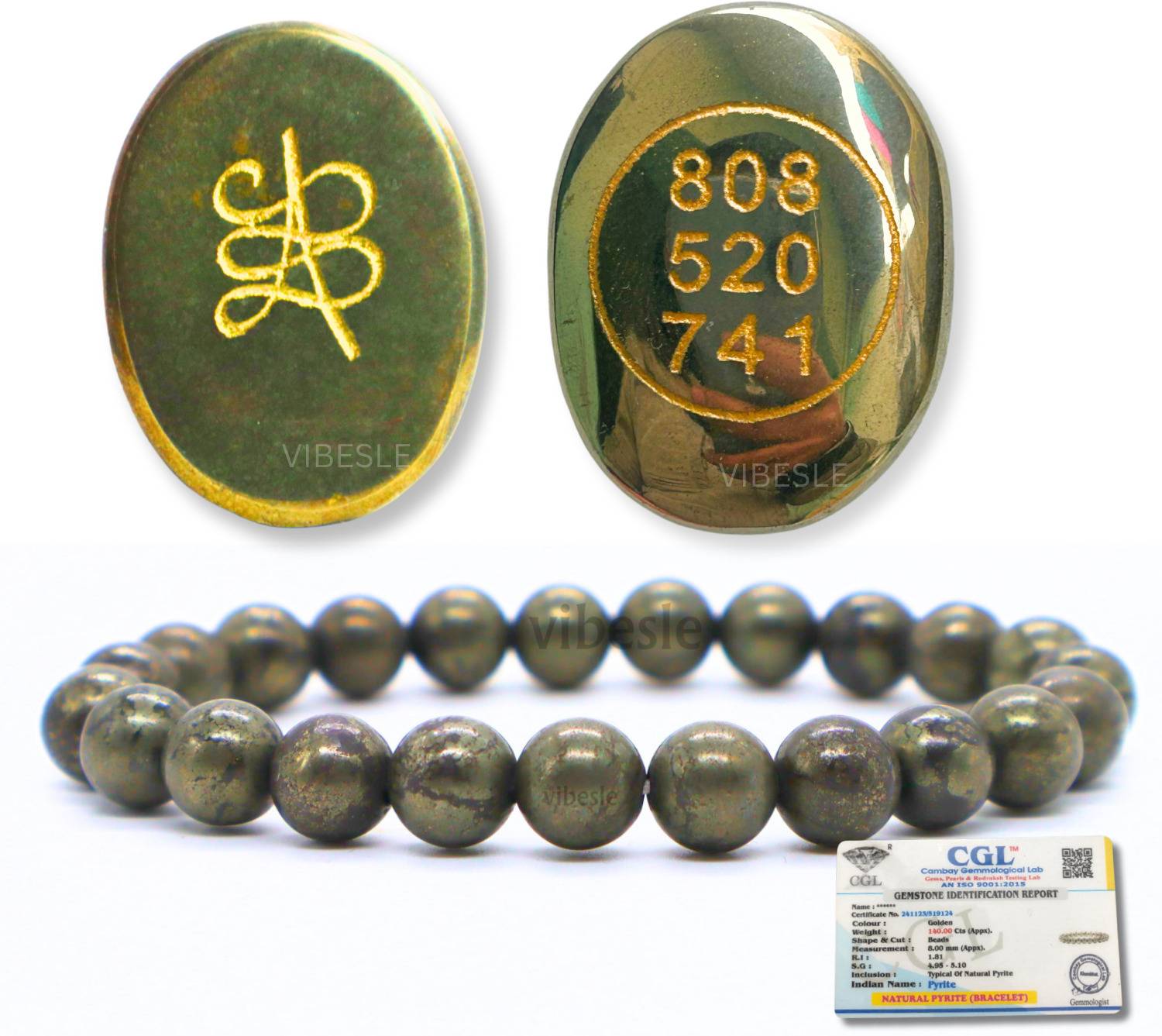 You Will Receive One Pyrite Zibu Coin and One Pyrite Bracelet With Bracelet Lab Test Report Certificate