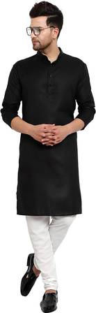 This traditional Indian kurta pajama 2-piece set includes a top (kurta) and a bottom. Loose-fitting sleeves and slits along the sides allow for an easy fit and let air circulate freely through the garment. The pant included in this kurta pyjama set is relaxed fit, Pyjama has 1 small pocket, Zipper and Draw-string closure. GREAT AS A GIFT FOR MEN: Everyone uses partywear on numerous occasions, give this kurta pajama set as a thoughtful gift for your loved one's next birthday, anniversary, wedding or any occasion. This is why it makes the perfect present for your dad, husband, son, or friend.