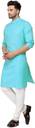 Vibhuti Men Solid Cotton Blend Straight Kurta Light Blue