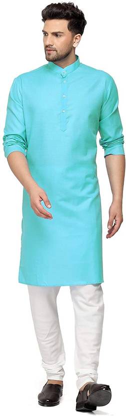 Men Solid Cotton Blend Straight Kurta (Light Green)